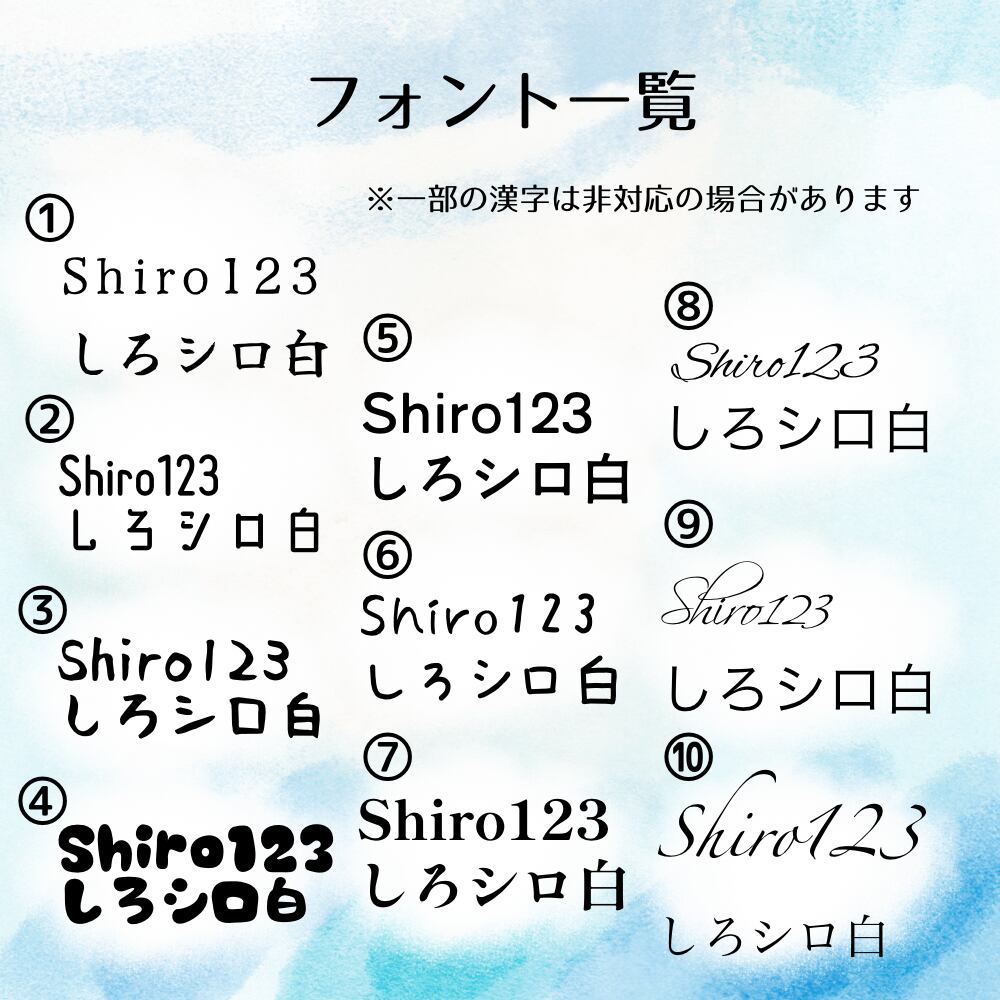 ・フォント:番号でご指定ください